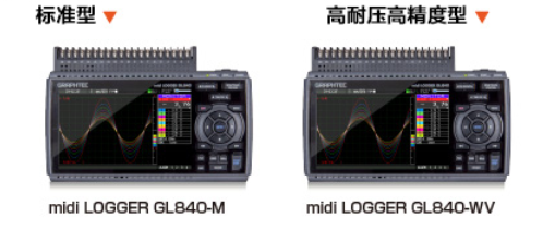 | [高耐壓·高精度]和[標準]的2個產品型號  最適合多通道溫度測量的[標準型 GL840-M]外、增加了適合充電電池的電壓測量和高精度溫度測量的[高耐壓·高精度型 GL840-WV]。